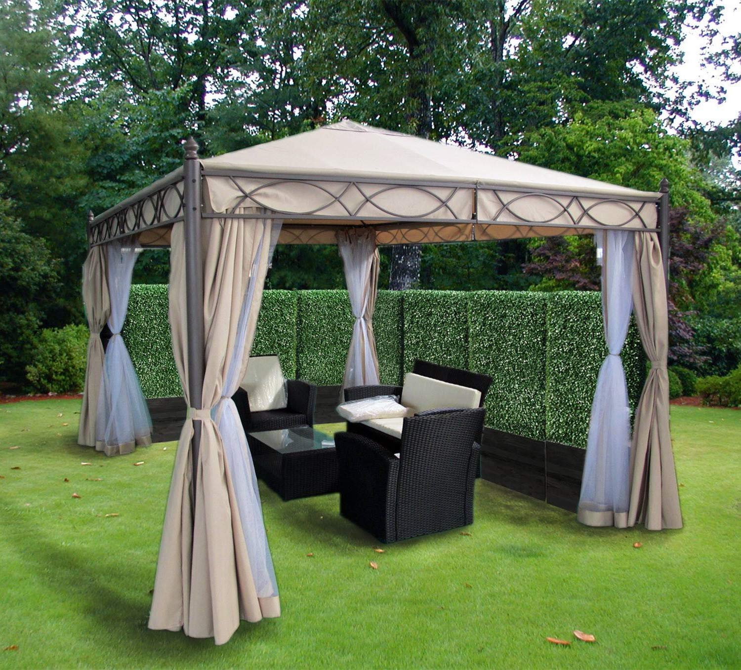 Leaves may need to be positioned to maximise screening effect, you can see through the hedge to some extent and the backing mesh can be seen from the front to some extent